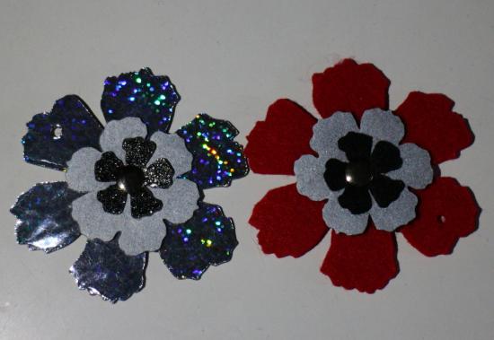 Huopakukka, jossa keskinmäinen kukka heijastava. Tuote ei ole hyväksytty heijastimeksi.