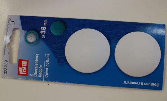Muovinen päällystettävä nappi. Halkaisija 38mm. Paketissa 2kpl