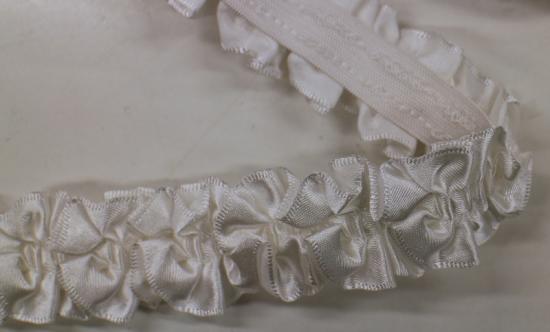 Joustava röyhelöinen satiininauha. Polyesteri. Leveys 3cm