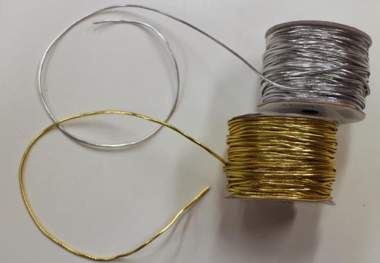 Pyöreä lurex kuminauha, 1mm halkaisijaltaan. Askartelukäyttöön.