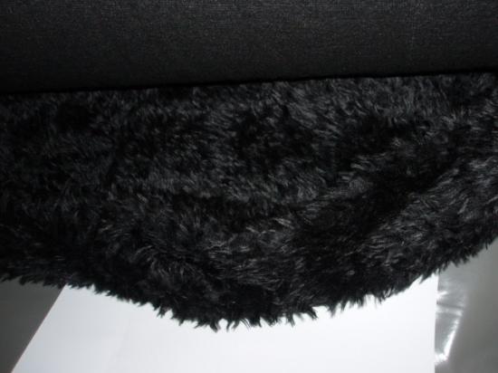 Mustaa karvakangasta. Polyesteri 20%/ akryyli 80%.